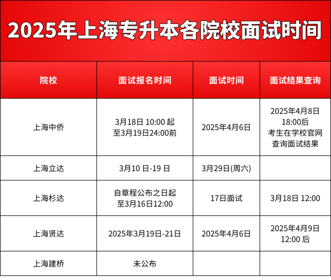 和各院校面试相关信息
