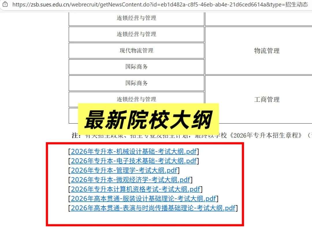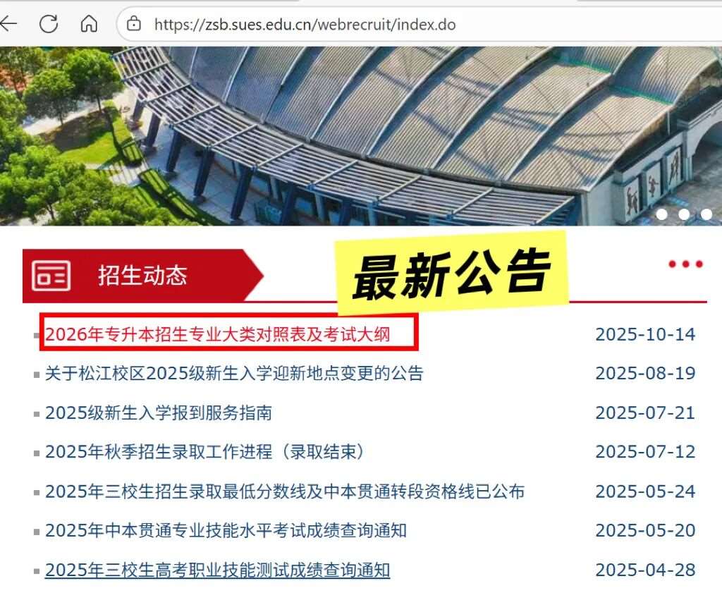 上海工程技术大学2026年专升本招生专业大类对照表及考试大纲发布!无变化!