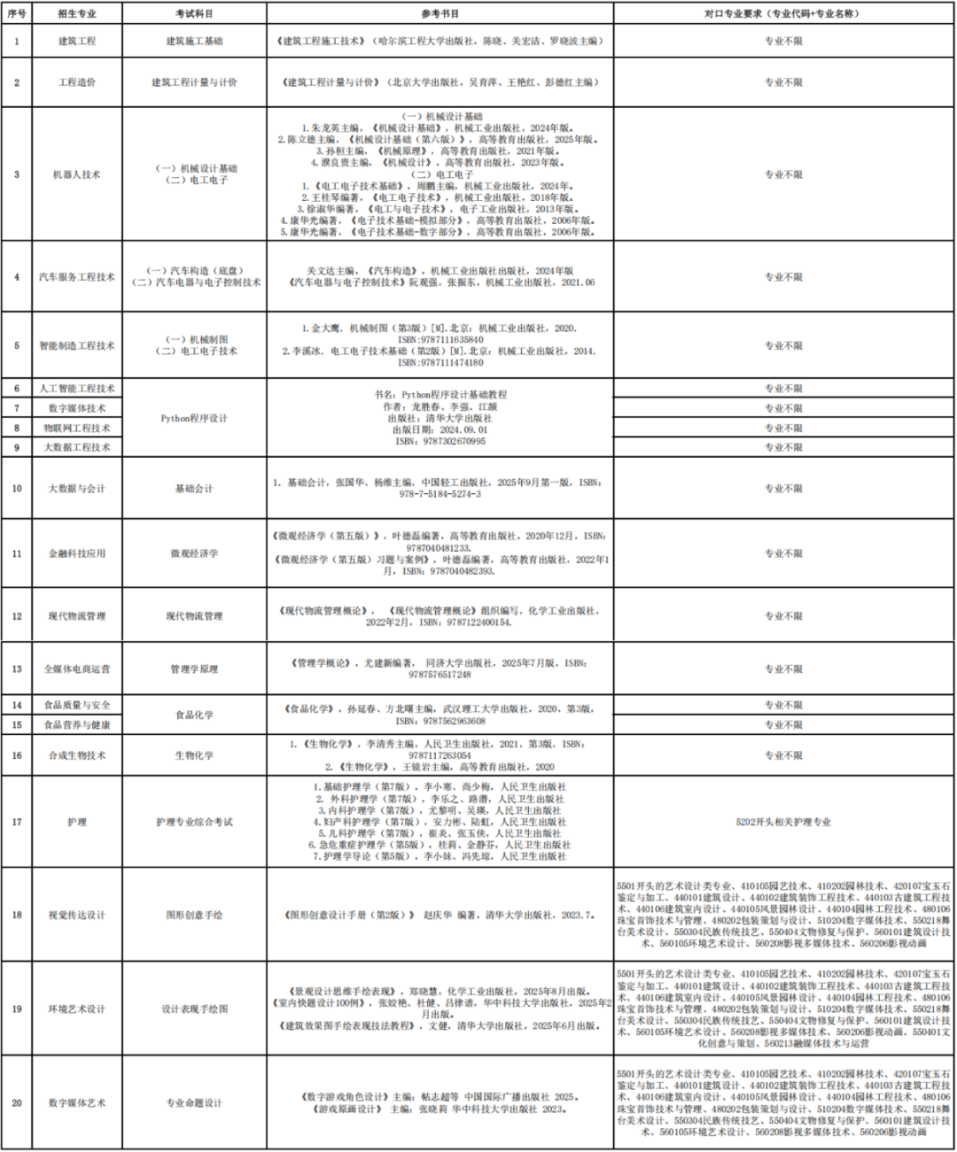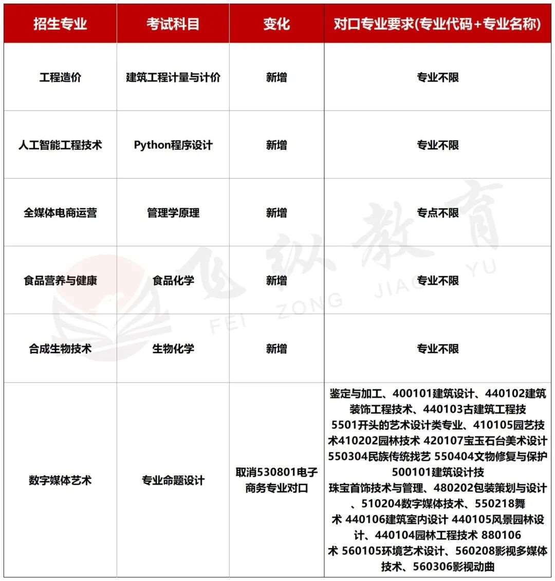 新增五个专业,专业全部无对口限制,对跨考生极其友好,另有一个专业数字媒体艺术取消530801电子商务专业对口限制