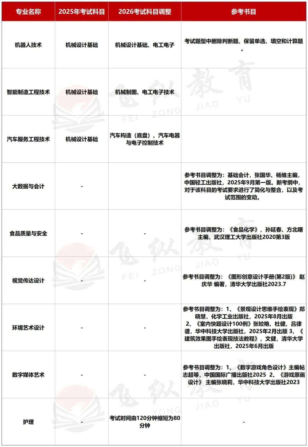 部分专业考试科目考试大纲发生变化