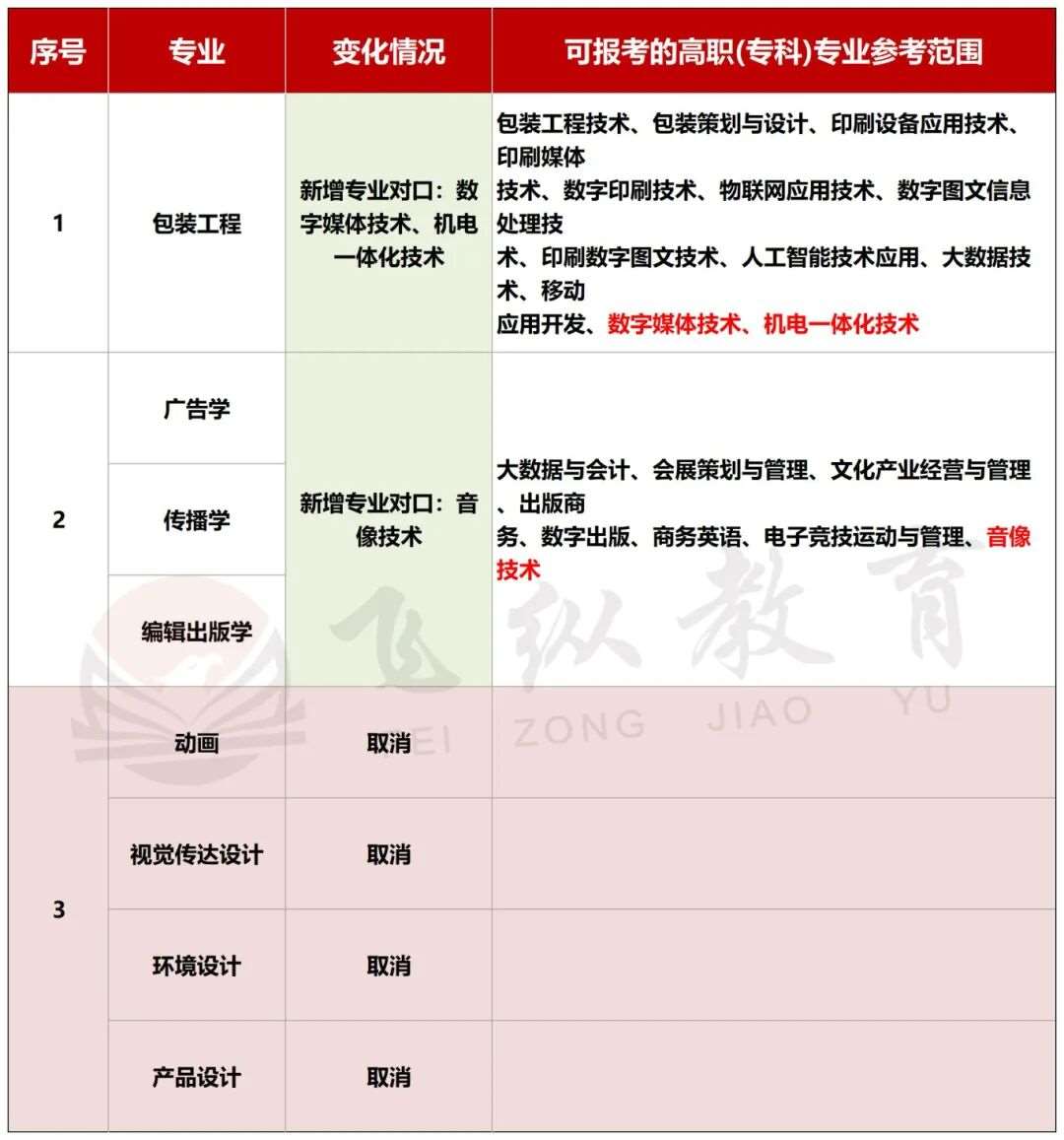 传播类专业新增了“音像技术”专业对口。