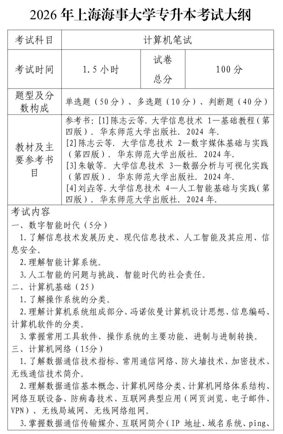 26上海海事大学专升本考试大纲已出
